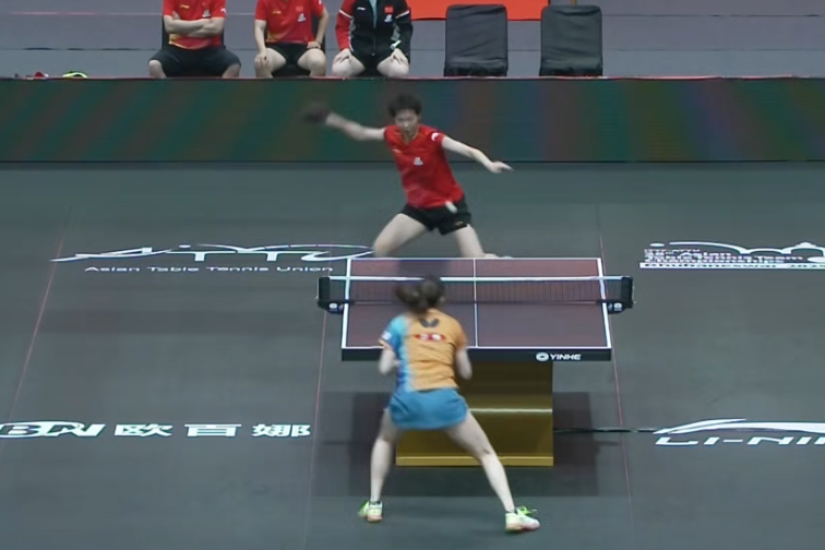 第三盘,蒯曼8-11、12-10、11-6、11-9战胜早田希娜,中国队总分3比0获胜。